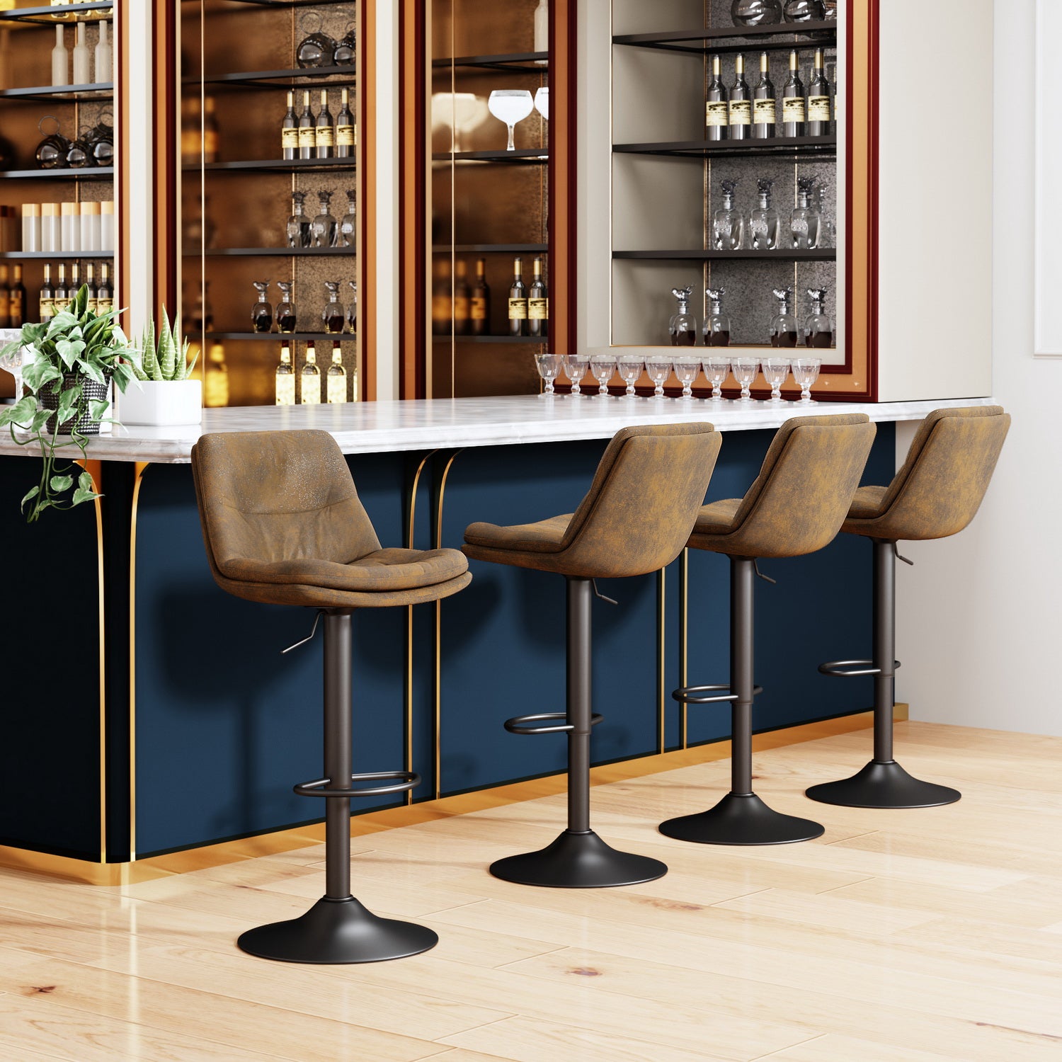 👌【Tapizado de Doble Capa】- Los taburetes de bar cuentan con un cojín de asiento de doble capa, relleno de espuma de alta densidad y cubierto con tela de gamuza, proporcionando una apariencia elegante y elegante. Propiedades resistentes a las manchas e impermeables para mayor durabilidad, eliminación sencilla de las manchas con solo un paño húmedo, ahorrando tiempo y molestias a largo plazo.