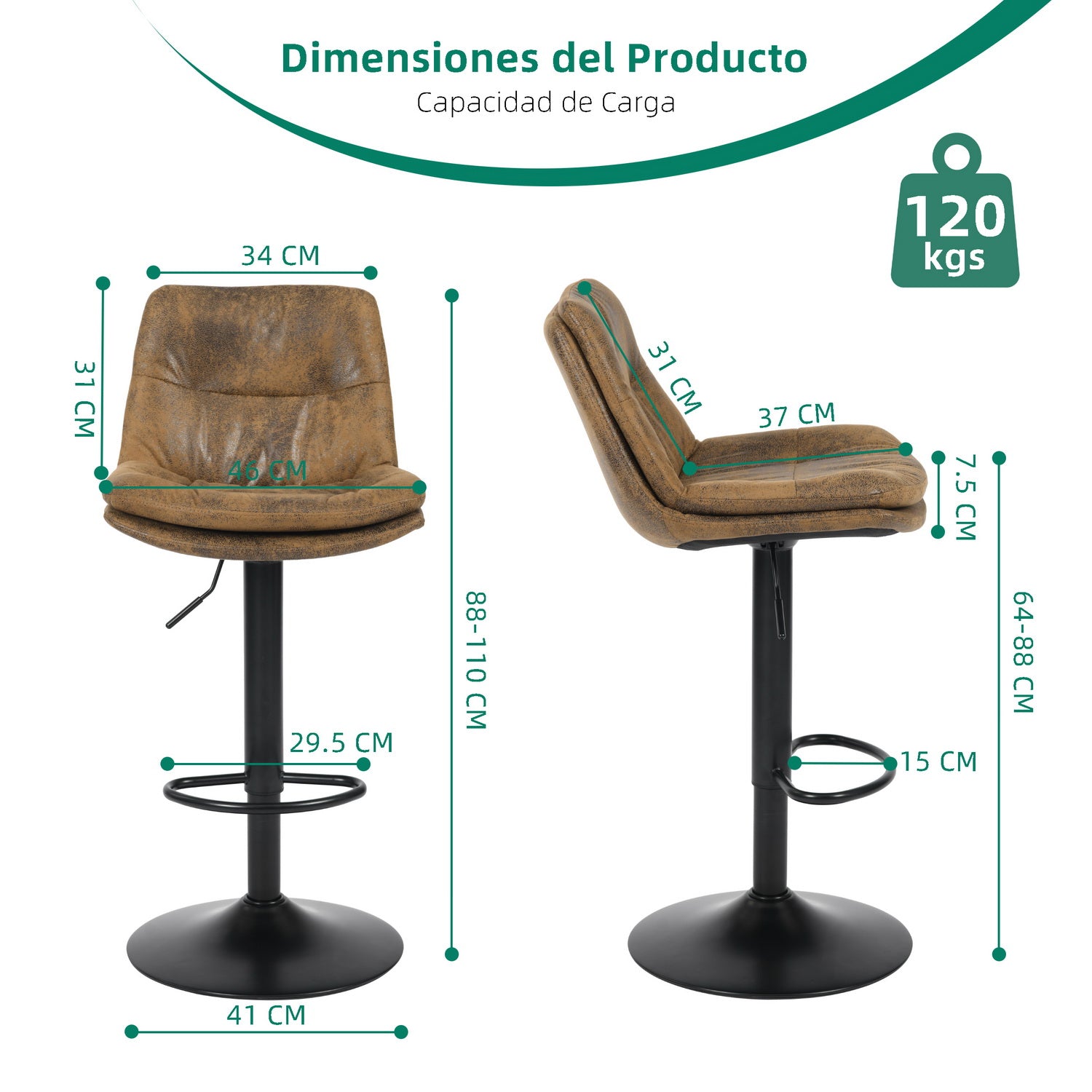 Juego de 2 Taburetes de Bar Giratorios Marrón