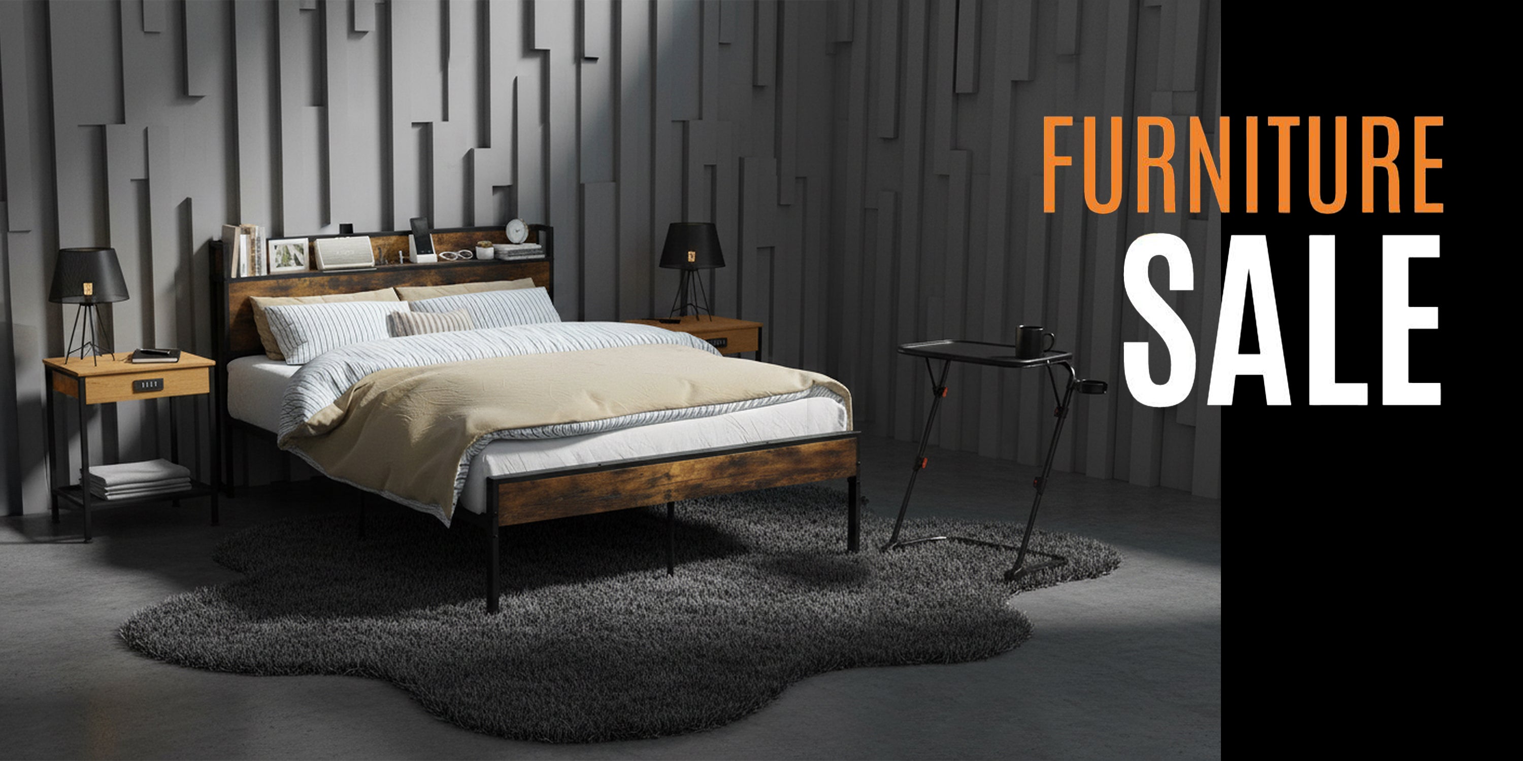 Mesa Auxiliar con Estación de Carga Roble y Negro