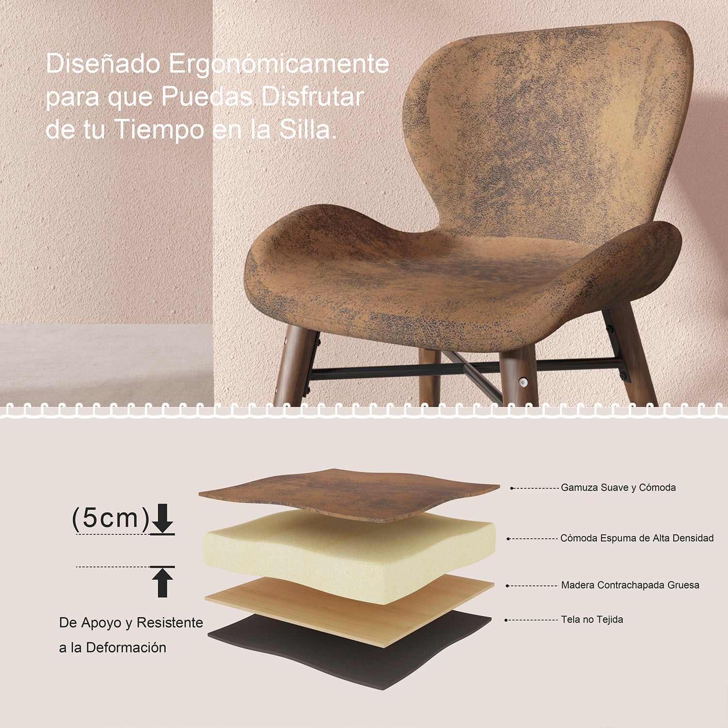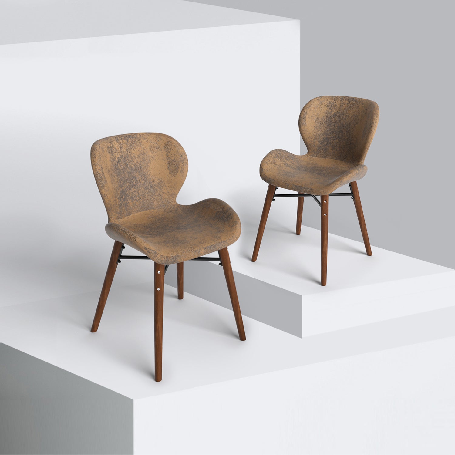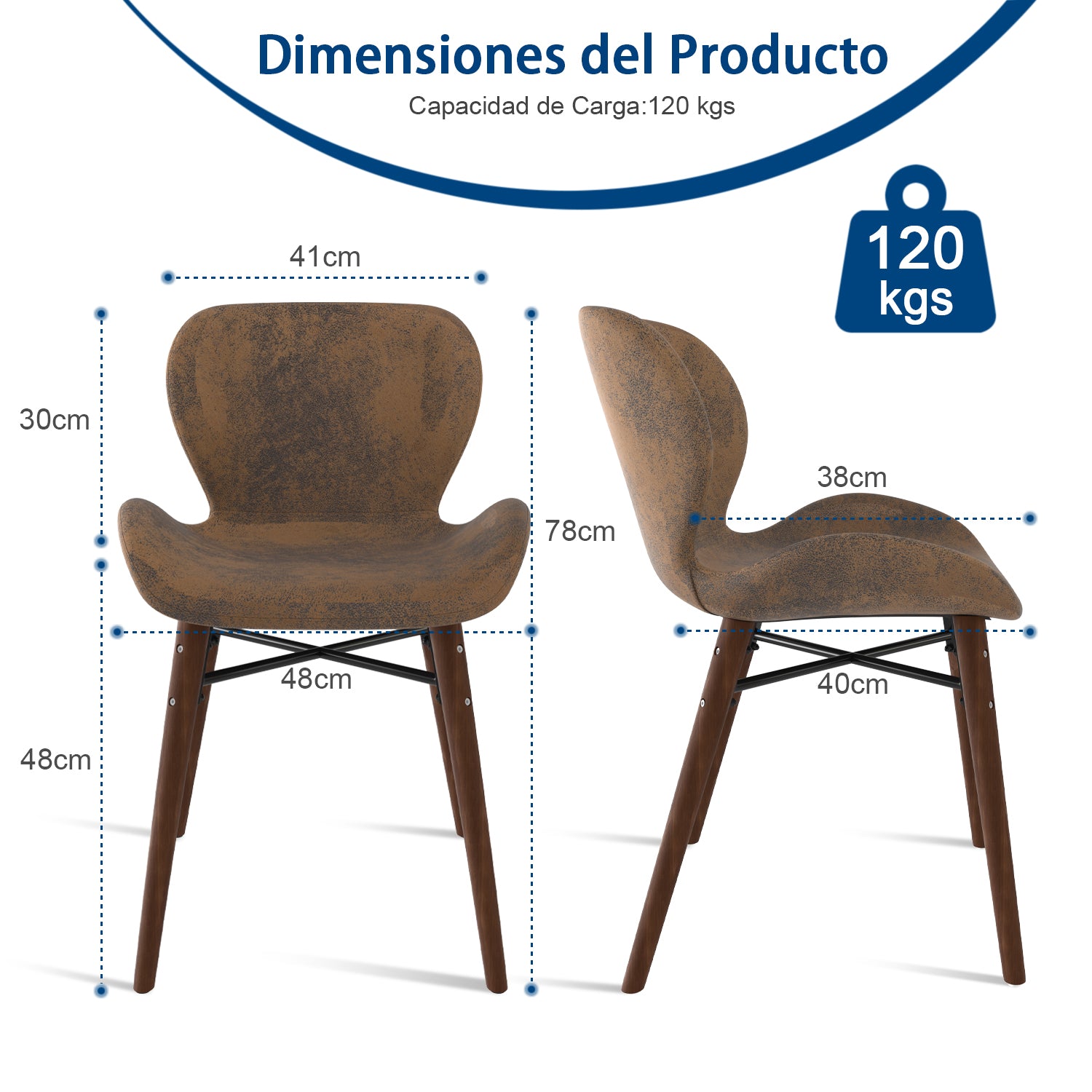 Juego de 2 Sillas de Comedor, Sillas de Cocina Tapizadas en Tela de Ante con Respaldo Marrón Vintage