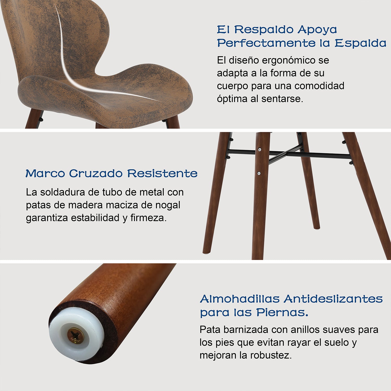 💪【Resistentes y Duraderas】- Estas sillas de comedor están equipadas con patas de madera maciza duraderas para una mayor durabilidad. Las sillas de cocina diseñadas con base de metal en forma de cruz no solo agregan robustez adicional al marco de la silla de comedor, sino que también brindan apoyo para una experiencia relajante al sentarse. Su capacidad máxima es de hasta 120 kgs.