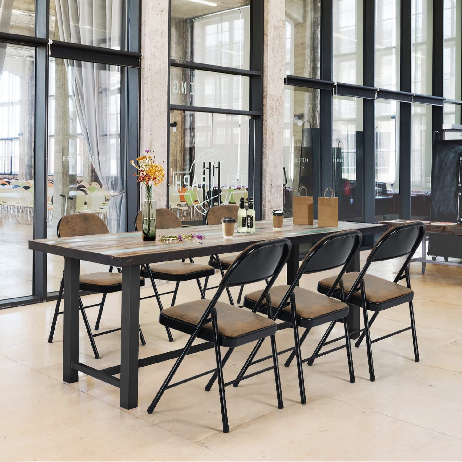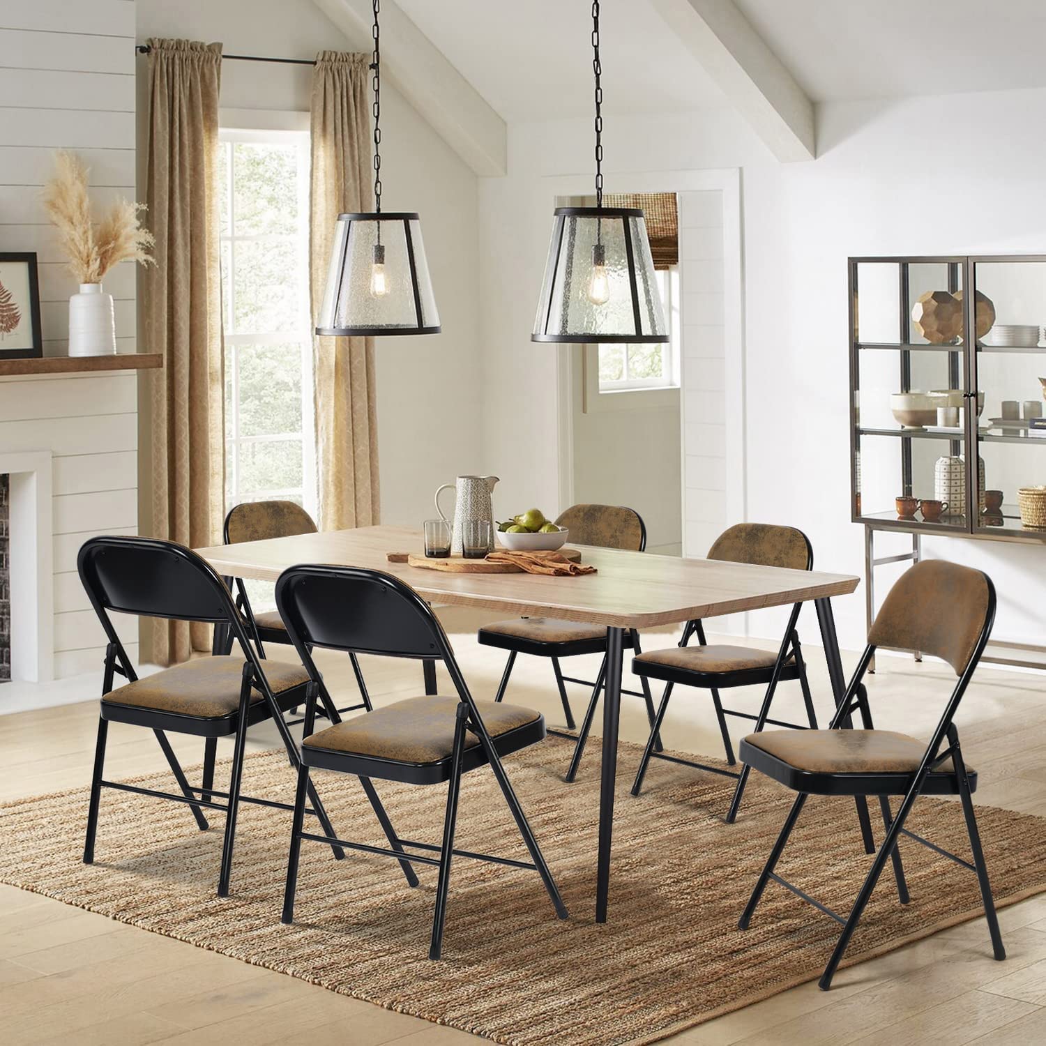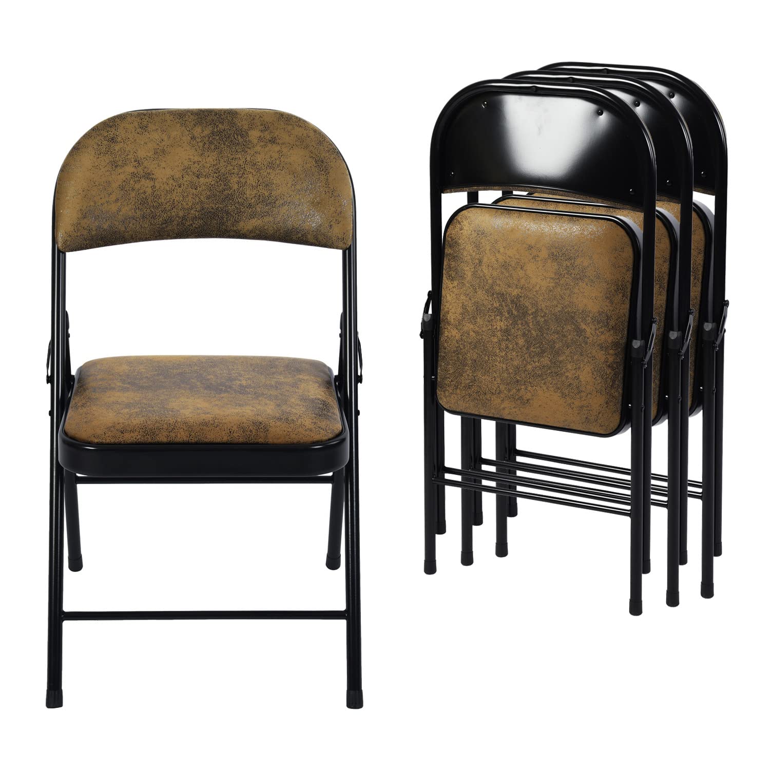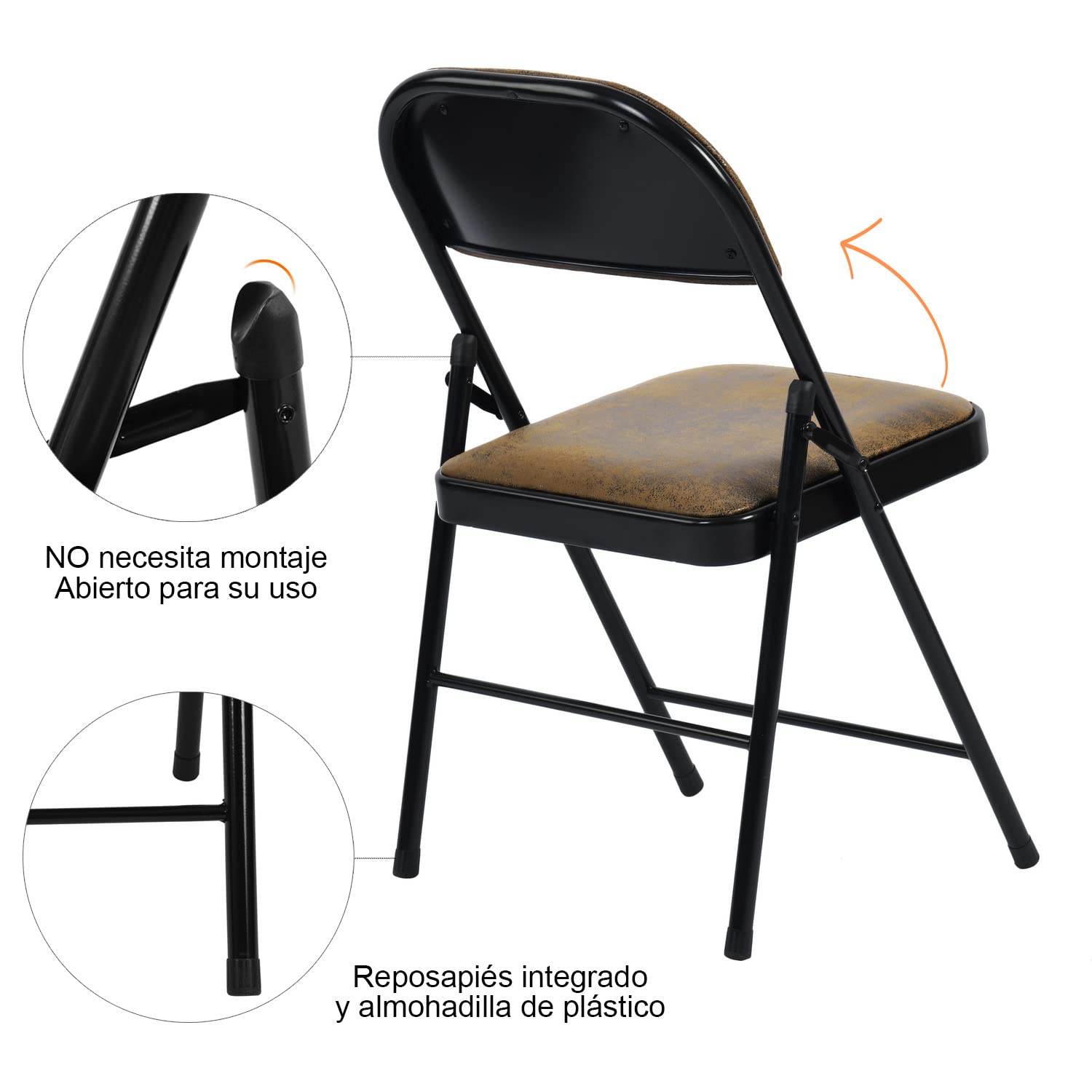 Paquete de 4 Sillas Plegables con Marco de Metal y Asiento Acolchado Tapizado de Tela de Gamuza