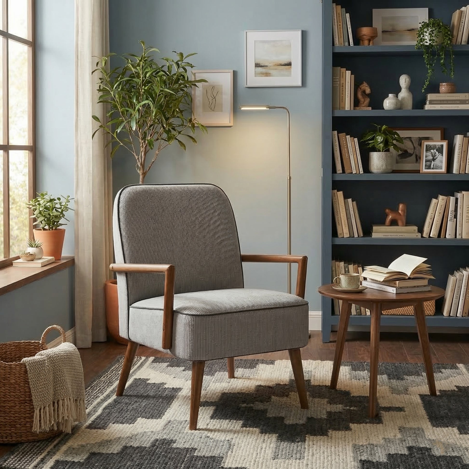 💯【Estilo Moderno de Mediados de Siglo】- Esta silla de sala de espera ha elegido un diseño simple en su apariencia. Patas y brazos de color nogal combinados con tela de pana, suave y cómoda, esta silla decorativa de madera se puede combinar con sus diversos muebles. Se puede limpiar fácilmente con un paño húmedo. Nuestro sillón también tiene almohadillas antideslizantes para evitar que raye el piso.