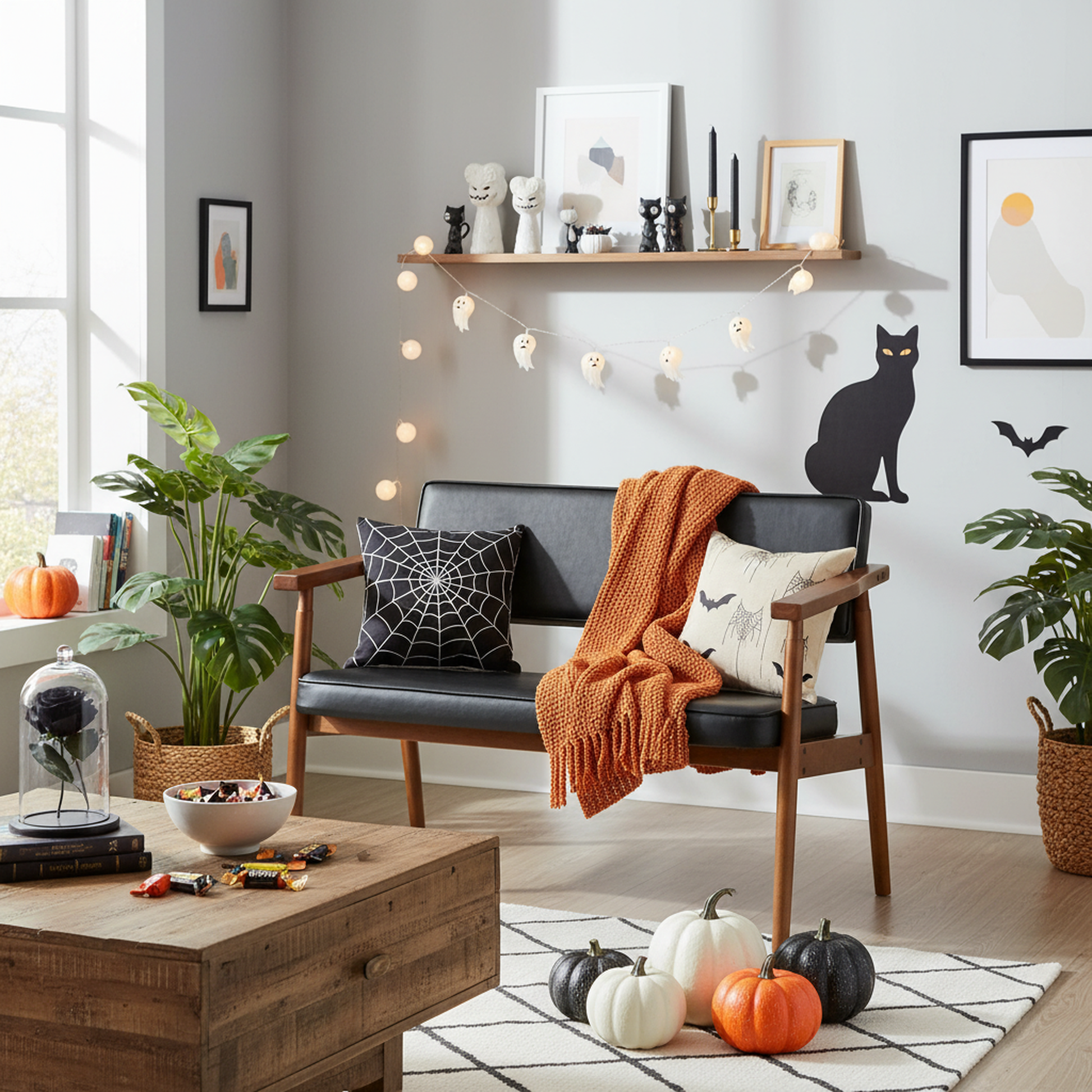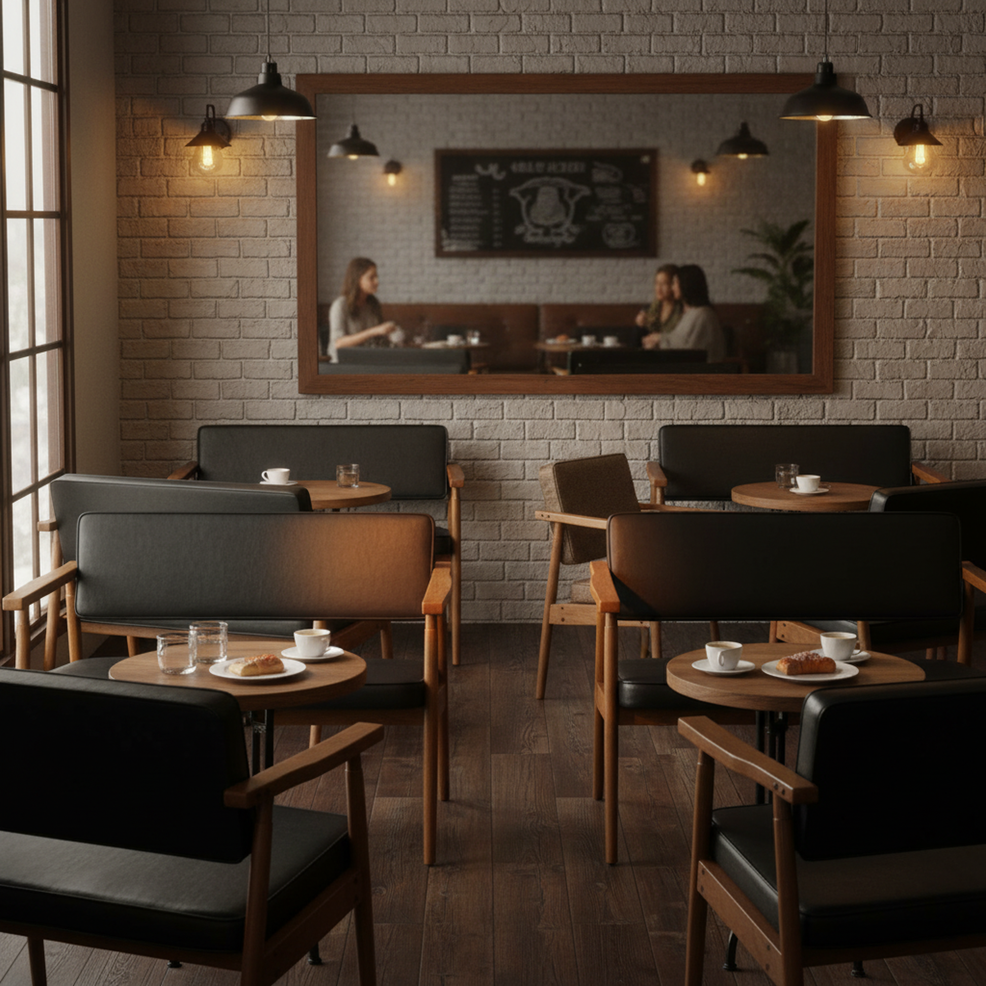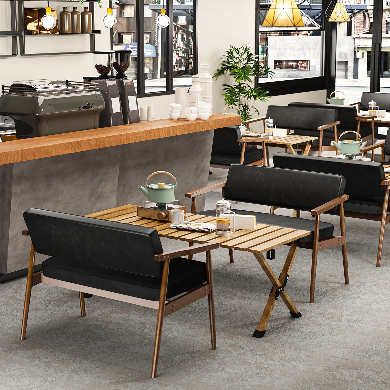 Sofá de Dos Plazas Modernas Mediados Siglo Negro