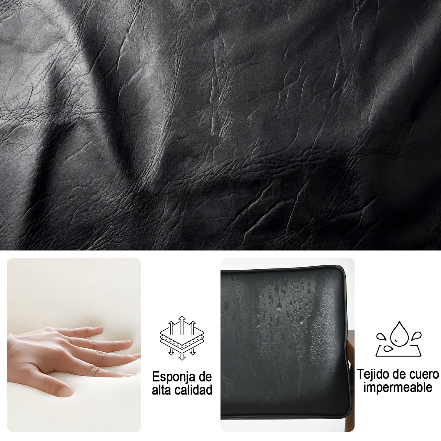 💯【Estilo Moderno de Mediados de Siglo】- Esta silla de sala de espera ha elegido un diseño simple en su apariencia. Patas de color nogal combinadas con cuero negro, suaves e impermeables, esta silla decorativa de madera se puede combinar con sus diversos muebles. Se puede limpiar fácilmente con un paño húmedo. Nuestro sillón también tiene almohadillas antideslizantes para evitar que raye el piso.